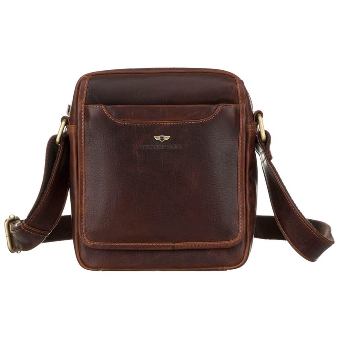 Skórzana listonoszka saszetka męska PETERSON 117 brązowa woskowana