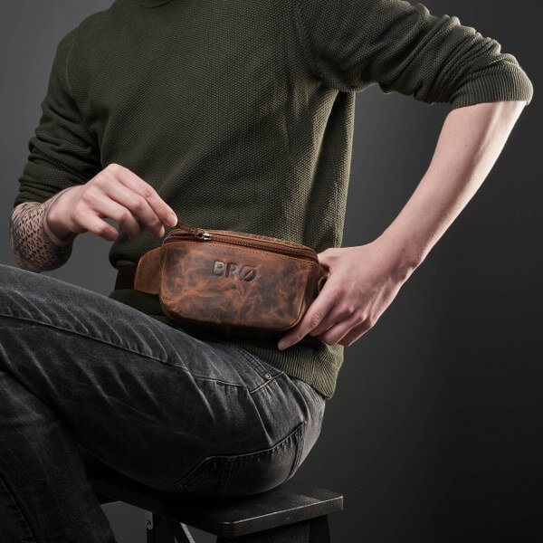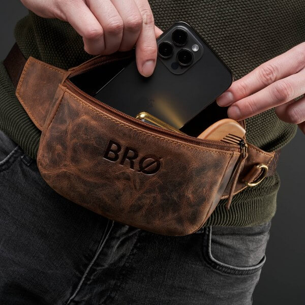 Stylowa nerka męska polskiej marki Brodrene, wykonana ze skóry naturalnej typu hunter. Jest dostępna w kolorze czarnym lub brązowym. Odporna na uszkodzenia skóra naturalna, staranne przeszycia i mocne zamki sprawiają, że nerka jest produktem wyjątkowo wytrzymałym – będzie służyć właścicielowi długie lata.