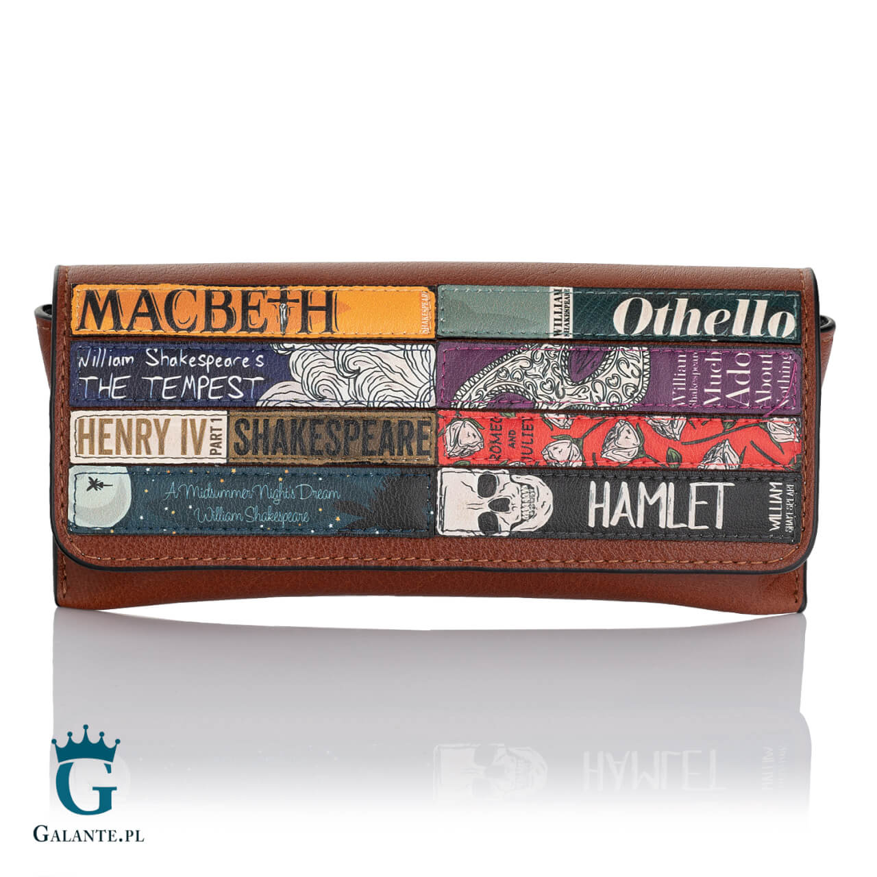 Oto etui na okulary dla każdego prawdziwego miłośnika klasyki literackiej, profesora literatury lub dla wielbicielki wspaniałej poezji. Etui jest częścią kolekcji “Nie czytasz? Nie idę z Tobą do łóżka” stworzonej przez młodzieżową markę Yoshi z Wielkiej Brytanii. Prezentowany model został uszyty ze skóry naturalnej w ciepłym, brązowym kolorze i ozdobiony wzorem grzbietów książek największych dzieł Szekspira – takich jak Hamlet, Makbet, Romeo i Julia czy Otello. To etui dla każdego, kto ceni prawdziwą literaturę. Może być również idealnym upominkiem dla nauczyciela lub wykładowcy literatury, pisarza lub artysty.