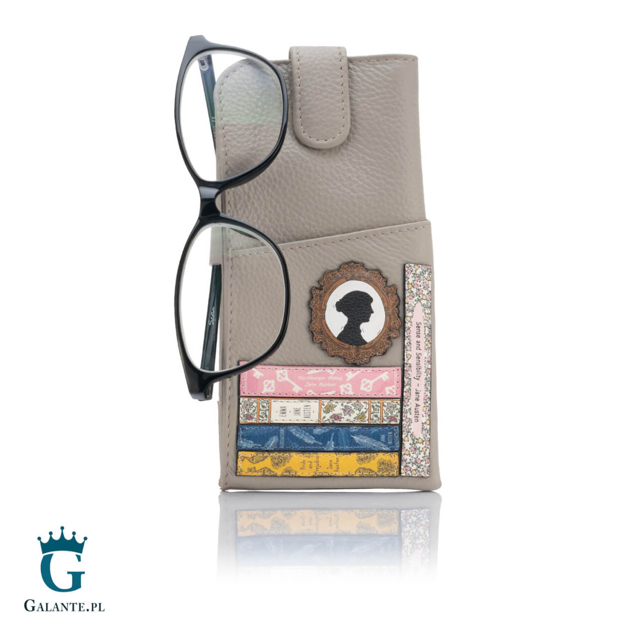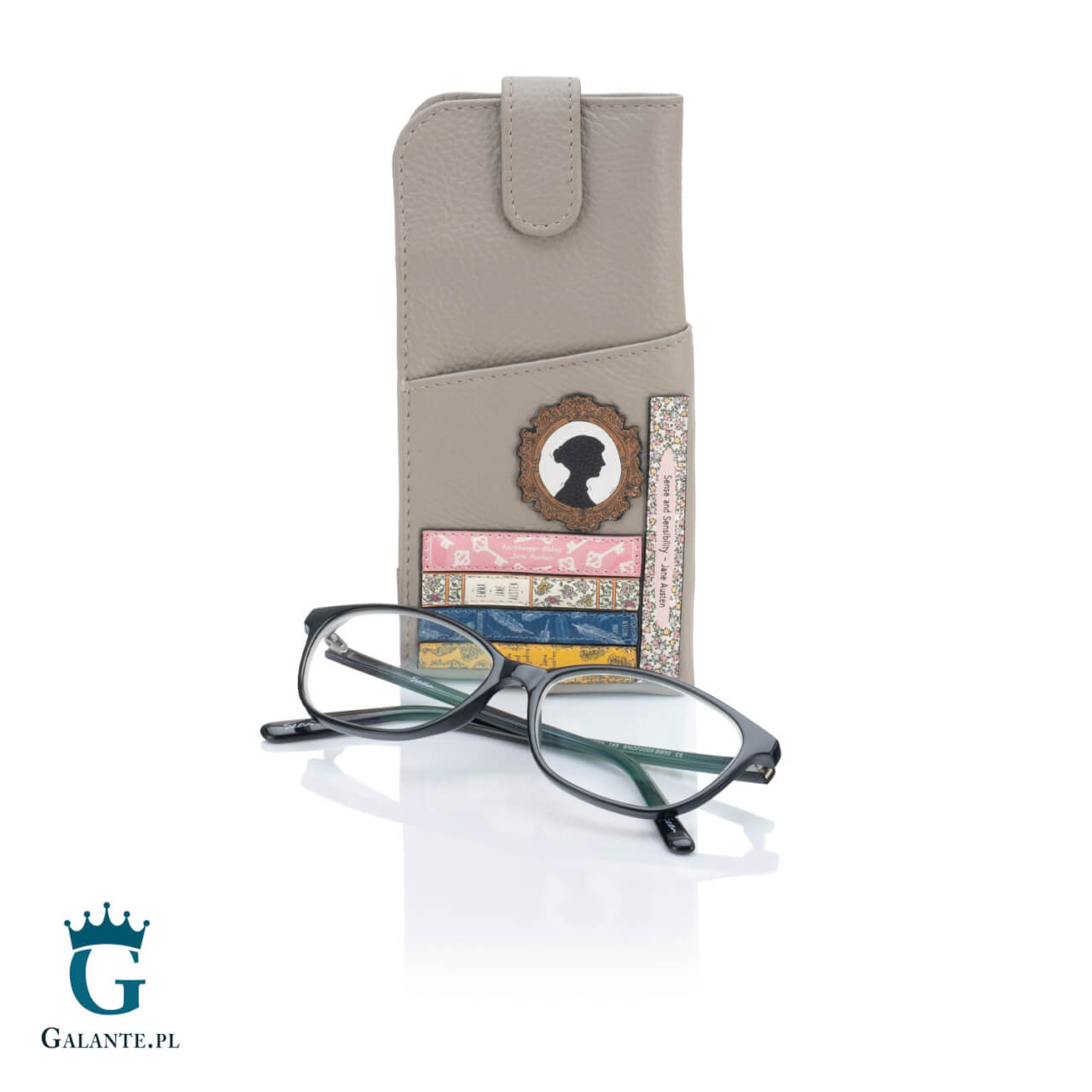 Skórzany futerał na okulary Jane Austen Yoshi Y4309 – szary