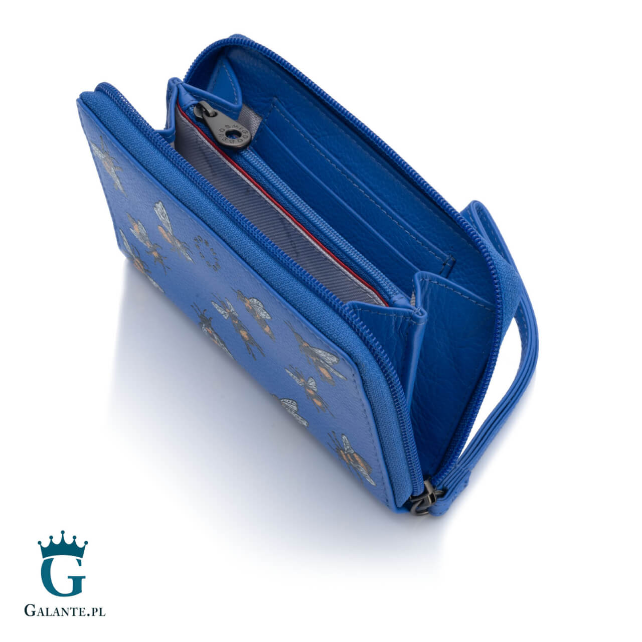 Kolekcja Pszczoły brytyjskiej marki Yoshi jest skierowana do kobiet, które lubią wyraziste stylizacje i kolorowe dodatki. Wykonany ze skóry naturalnej barwionej na intensywny niebieski kolor, przyciąga uwagę i podbija serce pięknym wzorem – czarno-żółtych pszczół na błękitnym tle, kojarzącym się z wiosennym niebem. Wysokiej jakości skóra i staranne szycie gwarantują, że portfel będzie służył właścicielce długie lata.