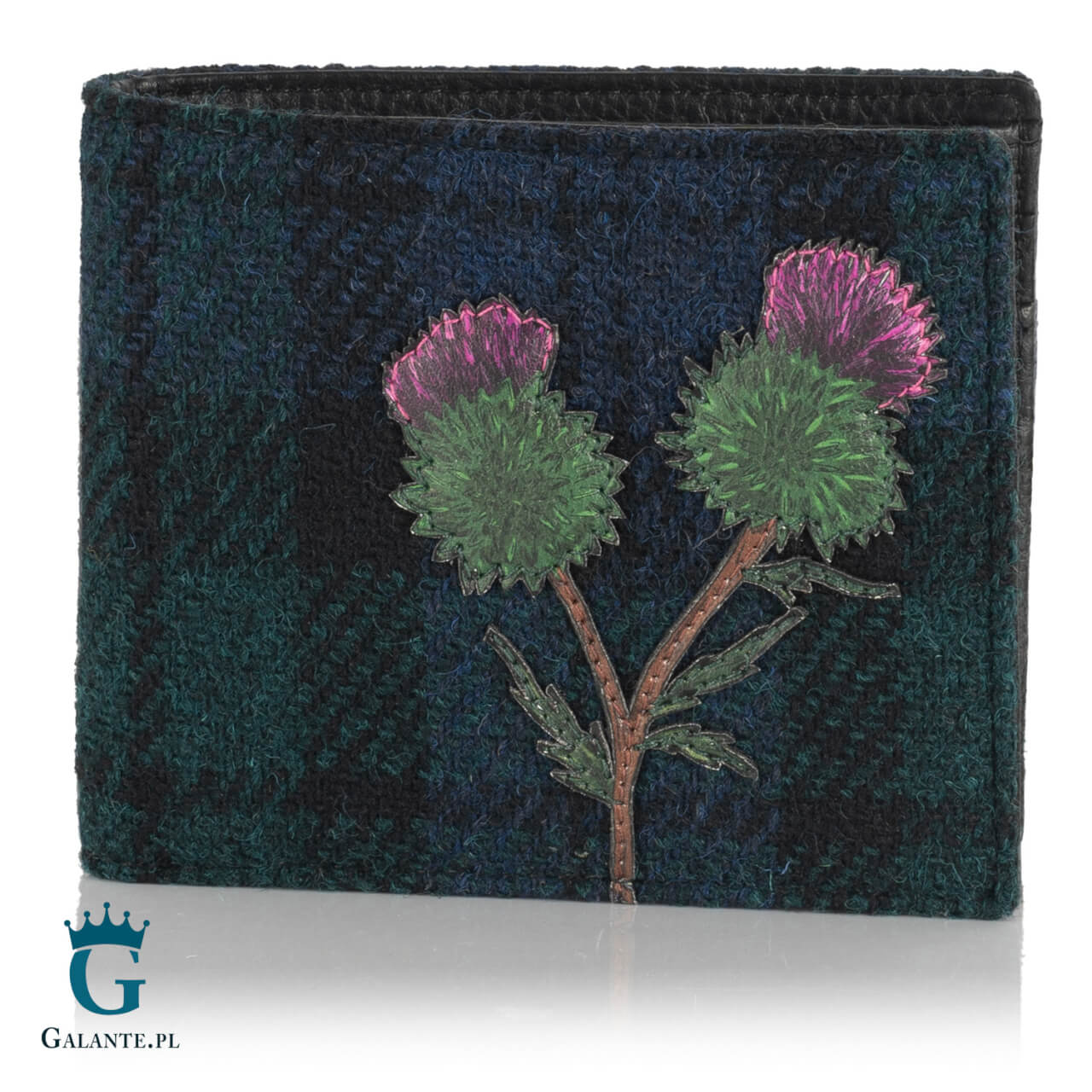 Portfele z kolekcji Oset Górski brytyjskiej marki Yoshi wyróżnia oryginalne połączenie miękkiej skóry naturalnej barwionej na czarno oraz ręcznie tkanego wełnianego tweedu. Okładkę portfela ozdabia tweed w czarno-granatową kratę oraz piękna skórzana naszywka kwitnącego ostu górskiego. To kolekcja dla mężczyzn, którzy szukają dodatków galanteryjnych innych niż wszystkie i lubią wyróżniać się z otoczenia.