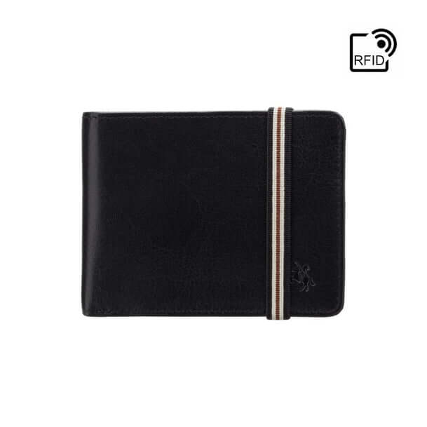 Skórzany portfel męski z opaską Visconti BN-3 z RFID – czarny