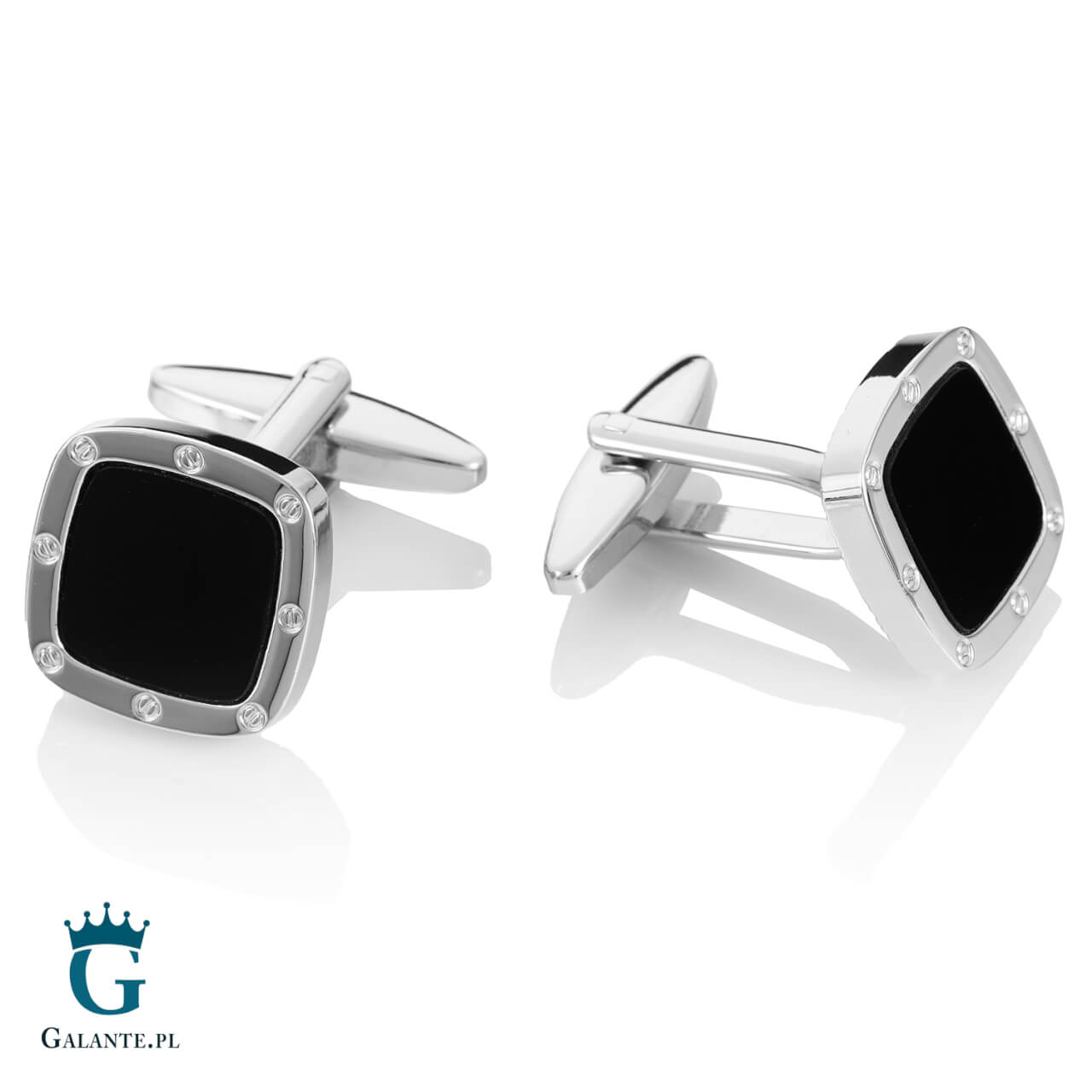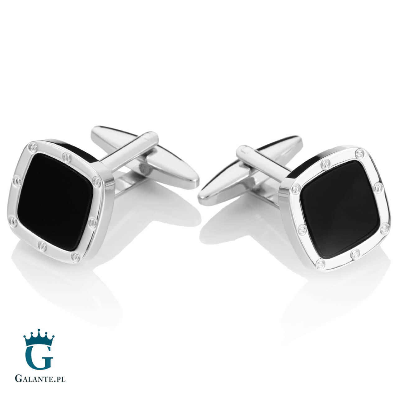 Prezentowane tutaj spinki do mankietów to idealna propozycja dla fanów masywnych, prostych dodatków o surowym charakterze. Z pewnością przypadną do gustu mężczyznom, którzy nie przepadają za błyszczącymi ozdobami i cenią nowoczesny styl. Spinki do mankietów z onyksem są bardzo gustownym uzupełnieniem męskiej koszuli, podkreślającym elegancki charakter stylizacji. Zostały wykonane z rodowanej stali szlachetnej i zapakowane w estetyczne czarne pudełeczko wykończone logo Galante.pl.
