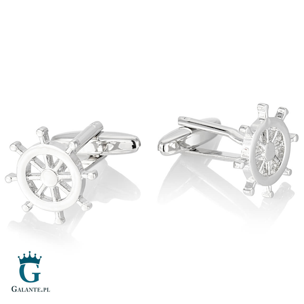 Koła sterowe na mankietach będą oryginalnym dodatkiem podkreślającym elegancję. Wykonane zostały ze stali szlachetnej i świetnie wyglądają zarówno z białą koszulą, jak i innymi odcieniami. Okrągły, klasyczny kształt oraz srebrny kolor spinek sprawiają, że są to ozdoby uniwersalne – świetnie będą wyglądały niezależnie od okazji. Każdy kapitan i marynarz z chęcią dołączy je zarówno do oficjalnego munduru, jak i do koszuli zakładanej z innej okazji.