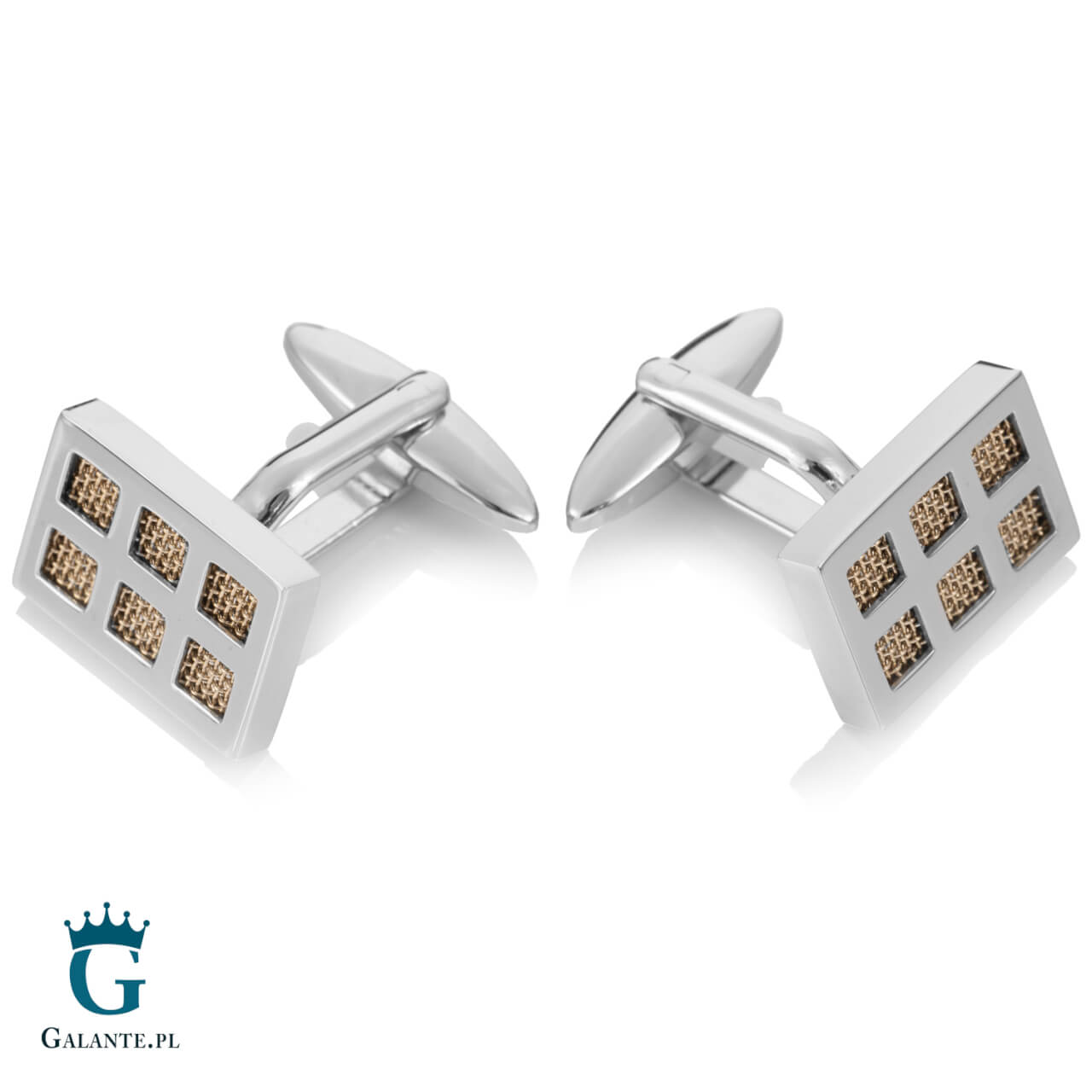 Prezentujemy niezwykle gustowne i szykowne spinki do mankietów, które urzekają swą prostotą. Spodobają się miłośnikom nowoczesnych, nieskomplikowanych form. Ze względu na swoje wzornictwo sprawdzą się idealnie jako dodatek do codziennej, biurowej stylizacji. Srebrno-złoty kolor sprawia, że są uniwersalnym dodatkiem do koszul w rozmaitych kolorach. Zostały wykonane ze stali szlachetnej i precyzyjnie wykonane. Sprzedawane w eleganckim, czarnym pudełeczku wykończonym logo Galante.pl.