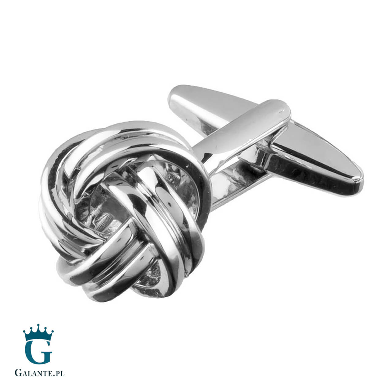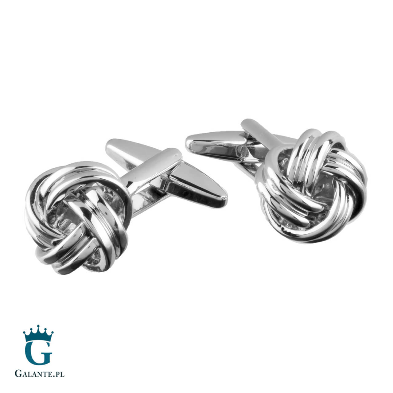 Prezentowane spinki zostały wykonane w kształcie trójwymiarowych węzełków w srebrnym kolorze. Niezwykle precyzyjnie wykonane, wykończone na połysk, będą wspaniałym wykończeniem każdej eleganckiej stylizacji. Szczególnie przypadną do gustu Panom, którzy preferują dodatki klasyczne, subtelne, o minimalnym wzornictwie.