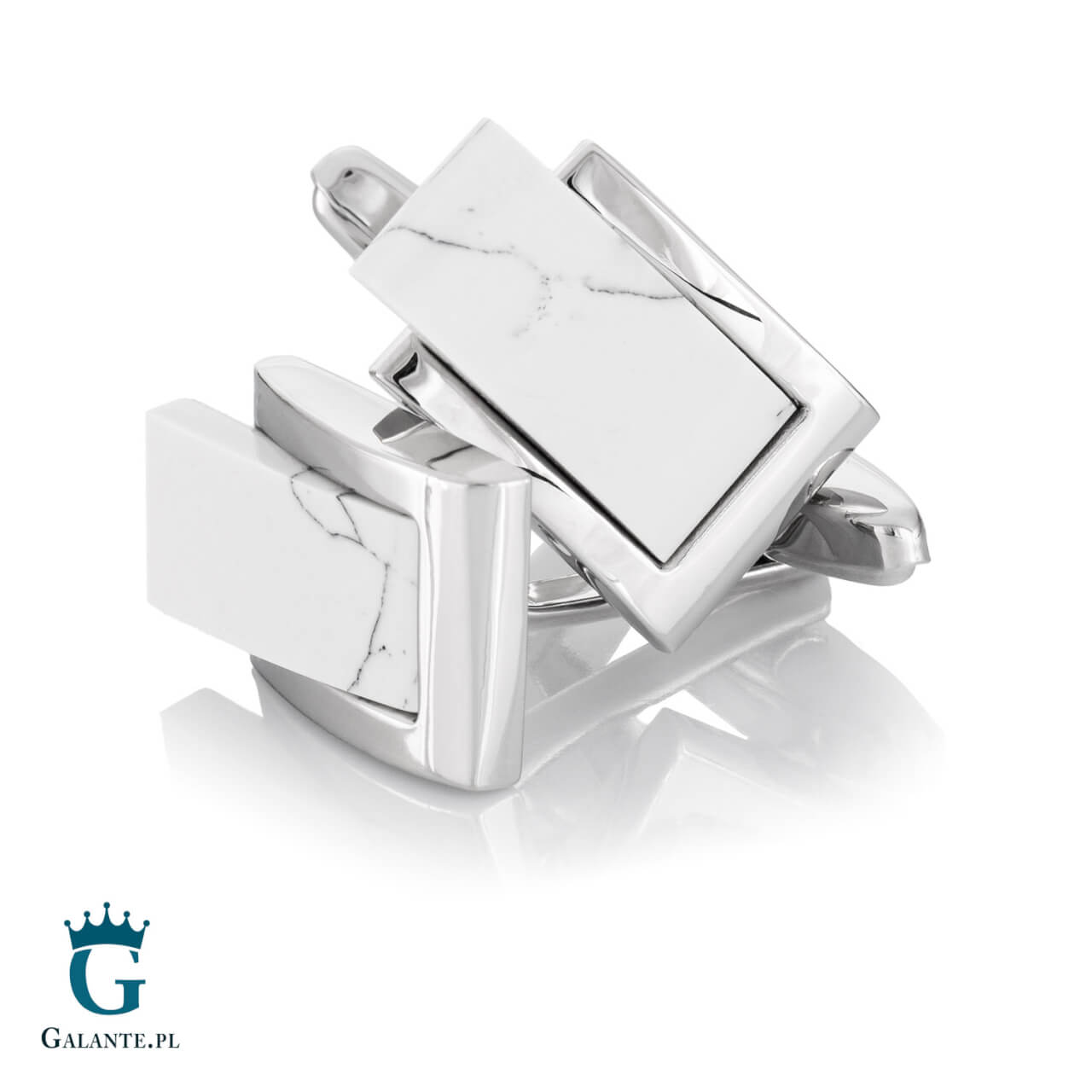 Spinki do mankietów stal szlachetna i biały marmur GS-294