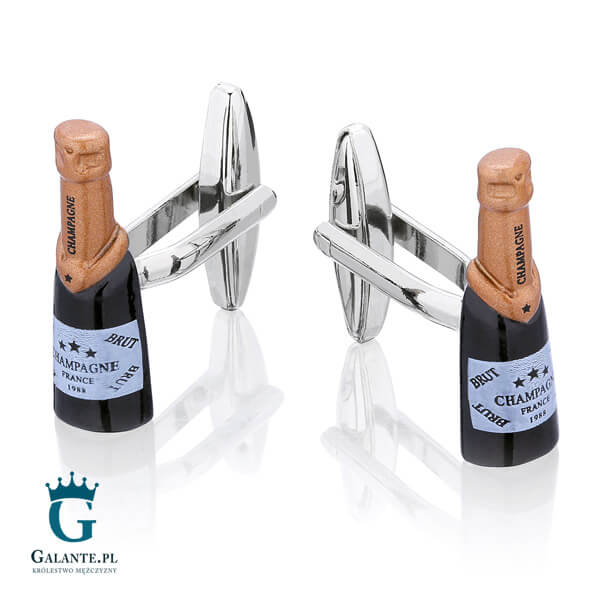 Niektóre okazje wymagają specjalnej oprawy – warto je uczcić butelką szampana. Oczywiście można ją otworzyć i spożyć jej zawartość, ale można również wykorzystać bardziej niekonwencjonalny sposób – na przykład wrzucić na mankiet koszuli! A to dzięki naszym niebanalnym spinkom do mankietów w kształcie butelek szampana. Spinki – szampany będą ciekawą ozdobą sylwestrowego stroju, świetnie sprawdzą się także w roli prezentu dla osoby, która osiągnęła sukces zawodowy. Spinki wykonane z wysokiej jakości stali szlachetnej o właściwościach antyalergicznych.