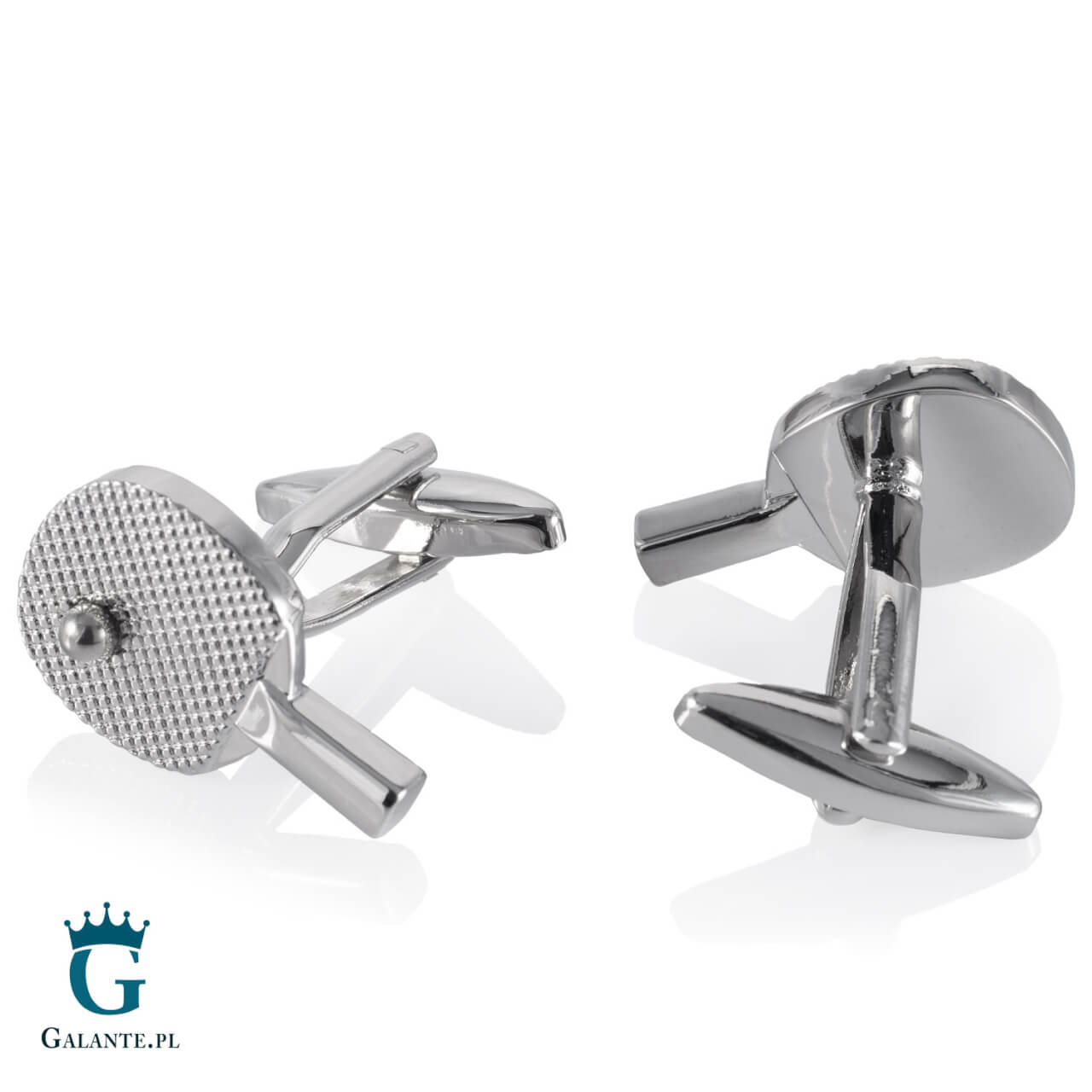 Prezentowany model to idealny prezent dla fanów tenisa stołowego. Spinki do mankietów w kształcie rakiet do tenisa stołowego z piłeczką podbiją serce każdego gracza. Starannie wykonane ze stali szlachetnej w srebrnym kolorze, w komplecie z eleganckim pudełkiem, są gotowym upominkiem z okazji wygranych rozgrywek, urodzin czy Świąt.