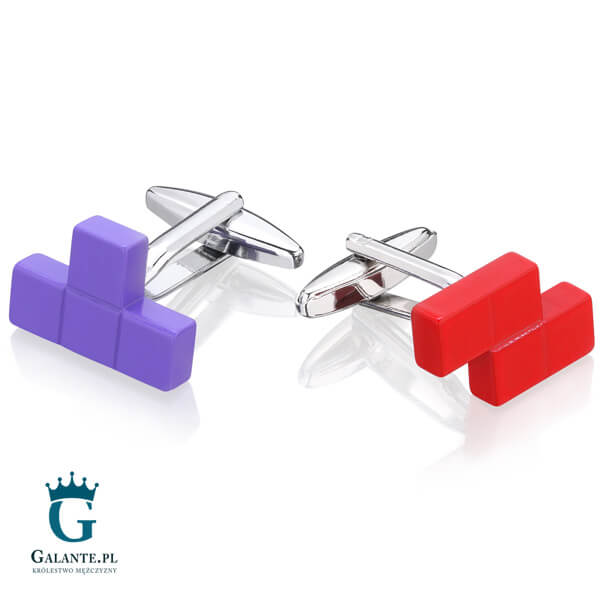 Popularna gra Tetris wciąż znajduje nowych miłośników, dlatego powstają liczne gadżety nawiązujące do niej. Prezentowana biżuteria to niezwykle oryginalne i subtelne spinki do mankietów w kształcie elementów Tetris. Jedna spinka ma kolor czerwony, a druga fioletowy. Spinki będą niebanalnym dodatkiem do każdej koszuli i będą symbolizowały grę uwielbianą przez noszącego. Spinki są produktem wysokiej jakości wykonanym ze stali szlachetnej.