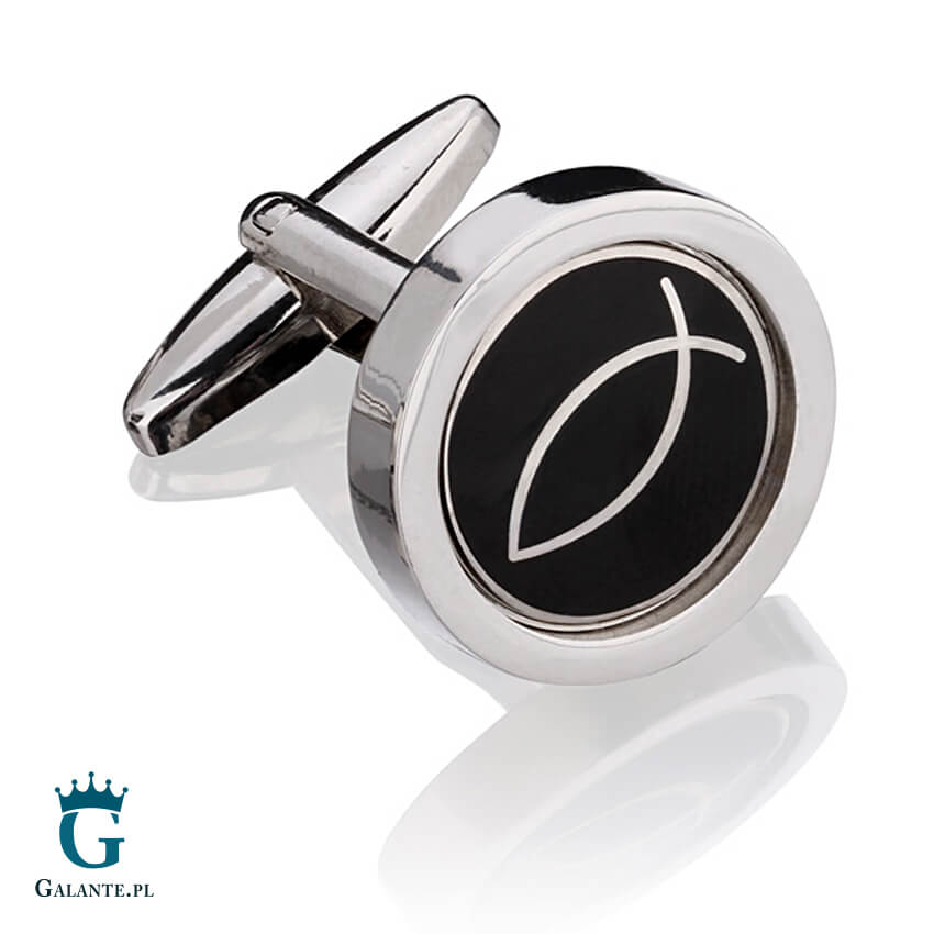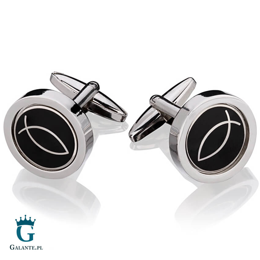 Dwa przecinające się łuki to symbol Ichthys – znak pierwszych chrześcijan symbolizujący Jezusa. Jest to ważny symbol dla osób wierzących i właśnie dla nich przygotowane są prezentowane tu okrągłe spinki do mankietów. Będą doskonałą ozdobą koszuli księdza czy osoby, dla której wiara ma duże znaczenie. Są świetnym pomysłem na prezent na przykład dla nauczyciela religii. Okrągłe, czarne spinki do mankietów wykonano ze stali szlachetnej o wysokiej trwałości, dzięki czemu posłużą noszącemu je mężczyźnie przez długi czas.