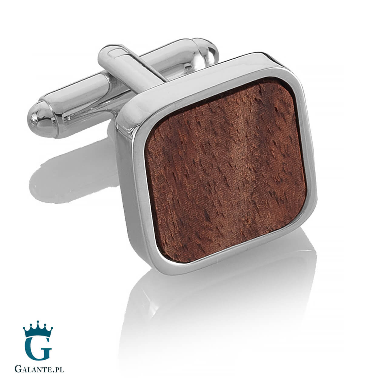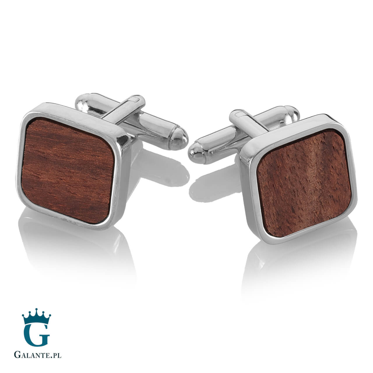 Oryginalne spinki do mankietów wykonane ze stali szlachetnej w srebrnym kolorze i ozdobione ciemnym drewnem. Świetnie wyglądają na mankiecie jasnej i ciemnej koszuli. To idealna biżuteria dla mężczyzn, którzy lubią biżuterię klasyczną i elegancką, bez przesadnego zdobienia, ale wykonaną z wysokiej jakości materiałów.
