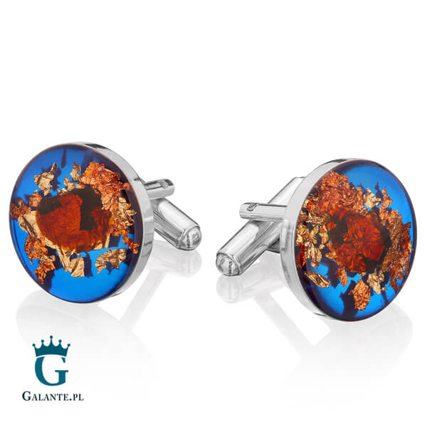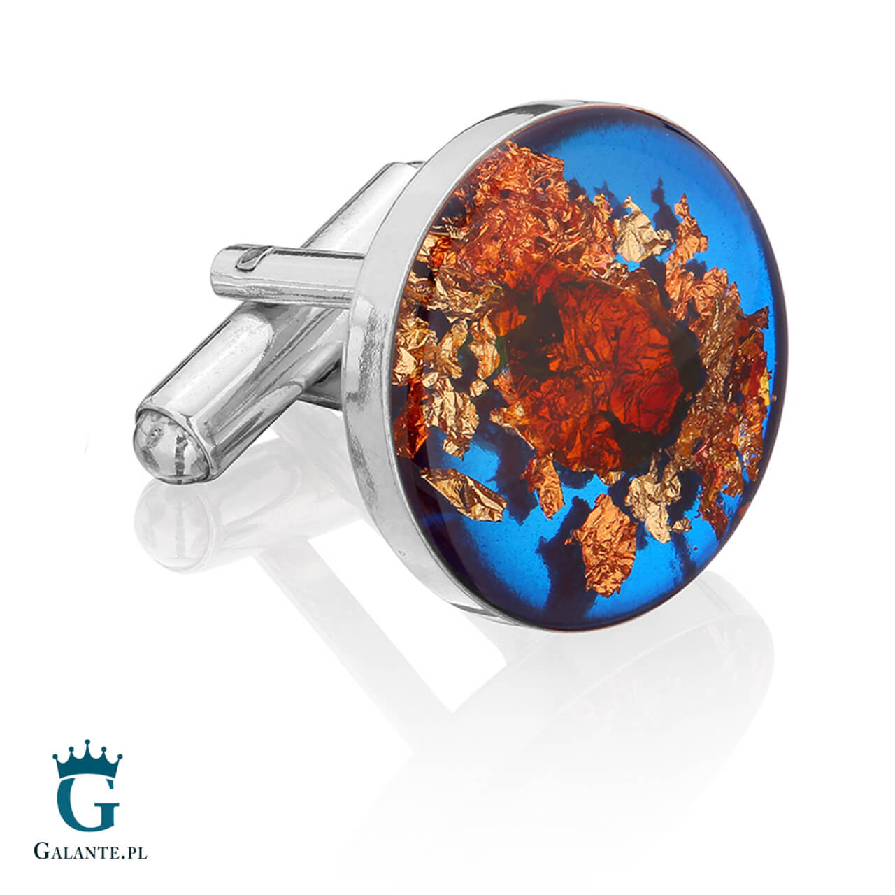 Srebrne spinki do mankietów Bałtycki Bursztyn w Żywicy SMB-008