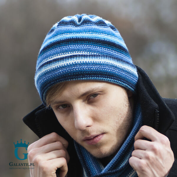 Prezentujemy piękną wełnianą czapkę męską marki The Scarf w paski w tonacji niebieskiej i granatowej. Docenią ją nawet największe zmarzluchy. Została wykonana w 100% z wełny owczej, która od lat jest znana z doskonałej termoizolacji. Ochroni głowę i uszy nawet podczas siarczystych mrozów, a równocześnie jest bardzo stylowa. Będzie dobrym dopełnieniem zarówno sportowej, jak i nieco bardziej eleganckiej stylizacji.