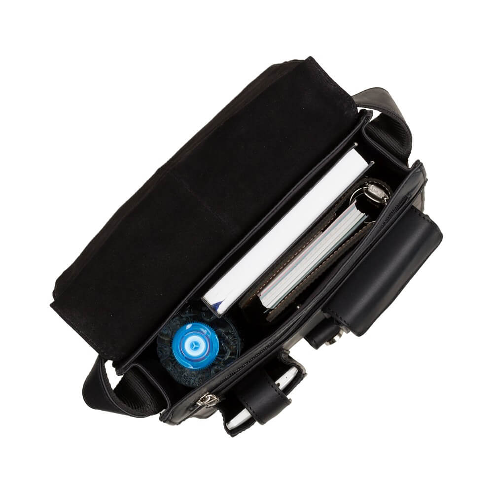 Torba posiada jedną komorę główną, która przykryta jest klapą zamykaną na zatrzask. W komorze głównej znajdziemy jedną kieszonkę zapinaną na zamek (wygodnie zmieści telefon lub portfel), wsuwaną kieszeń, która zmieści teczkę A4 oraz wsuwaną małą kieszonkę na dokumenty lub drobiazgi. Pod klapą znajduje się duża kieszeń zamykana na suwak (21 cm x 25 cm), wsuwana kieszeń (24 cm x 22 cm) oraz zamykane na zatrzask kieszonki na dokumenty i telefon. Z tyłu torba posiada zamykaną na zamek kieszeń 21 cm x 22 cm. Niezaprzeczalnym atutem tej torby jest również regulowany pasek o długości ok. 140 cm i szerokości ok. 3.8 cm, który w prosty sposób można dowolnie skracać lub wydłużać. Pasek posiada wygodny, przesuwany ochraniacz ramienia.