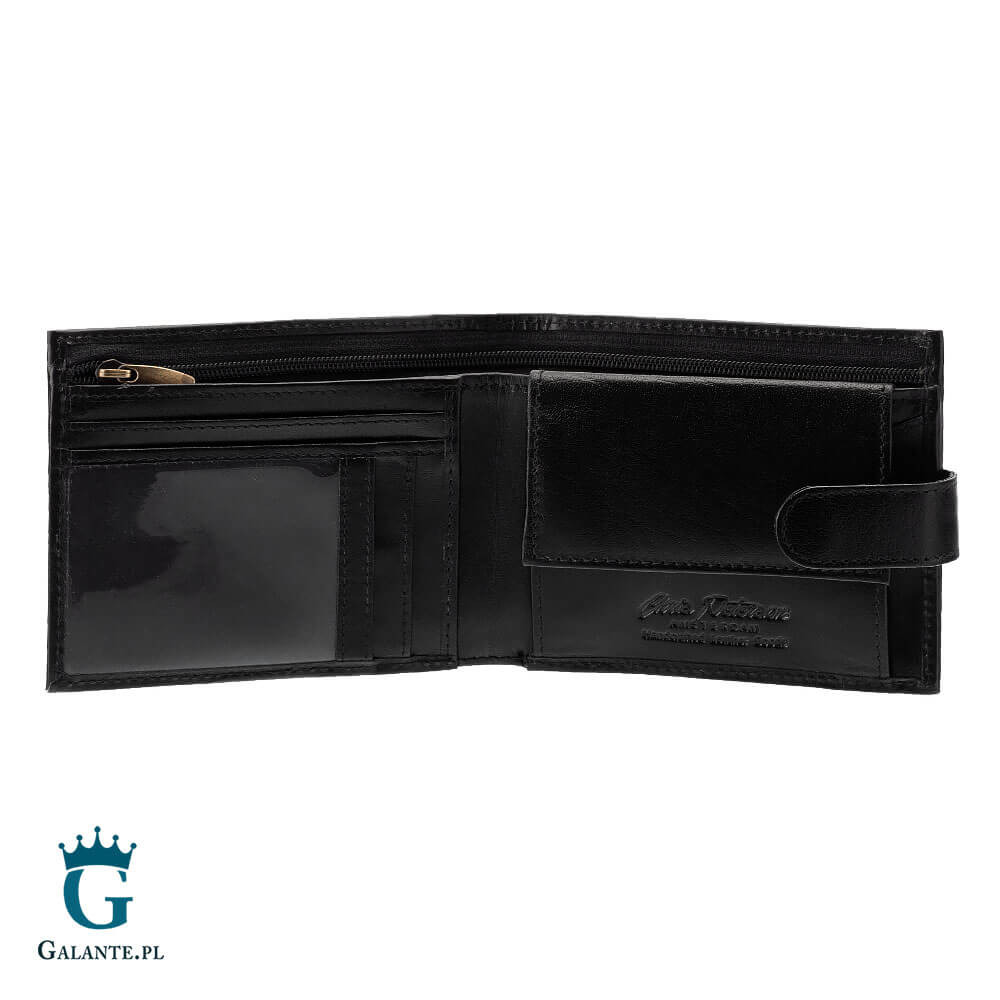 Portfel 380Z jest wykonany z wysokiej jakości skóry naturalnej, barwionej na kolor czarny i ręcznie polerowanej. Bardzo poręczny, o wymiarach 11,5 cm szerokości i 9,5 cm wysokości, jest zapinany na wygodny zatrzask. Posiada: aż trzy szerokie przegrody na banknoty, w tym jedną zamykaną na zamek błyskawiczny; zamykaną na zatrzask kieszonkę na monety; 4 miejsca na karty (w tym jedno przezroczyste, idealne na zdjęcie bliskiej osoby) oraz 2 dodatkowe kieszenie na bilety lub dokumenty. Jest również wyposażony w ochronę RFID, zabezpieczającą karty i dokumenty przed zdalnym kopiowaniem i kradzieżą danych. Warto zainwestować w tę technologię, chroniącą wrażliwe na kradzież informacje!