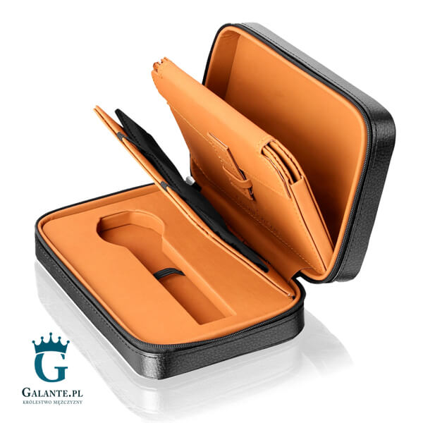 Każdy zegarek zapakowany w eleganckie skórzane etui z logo producenta.