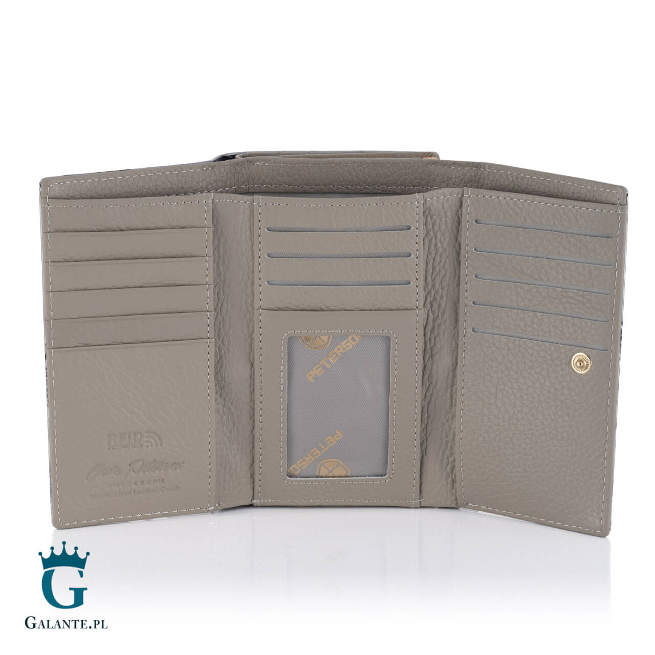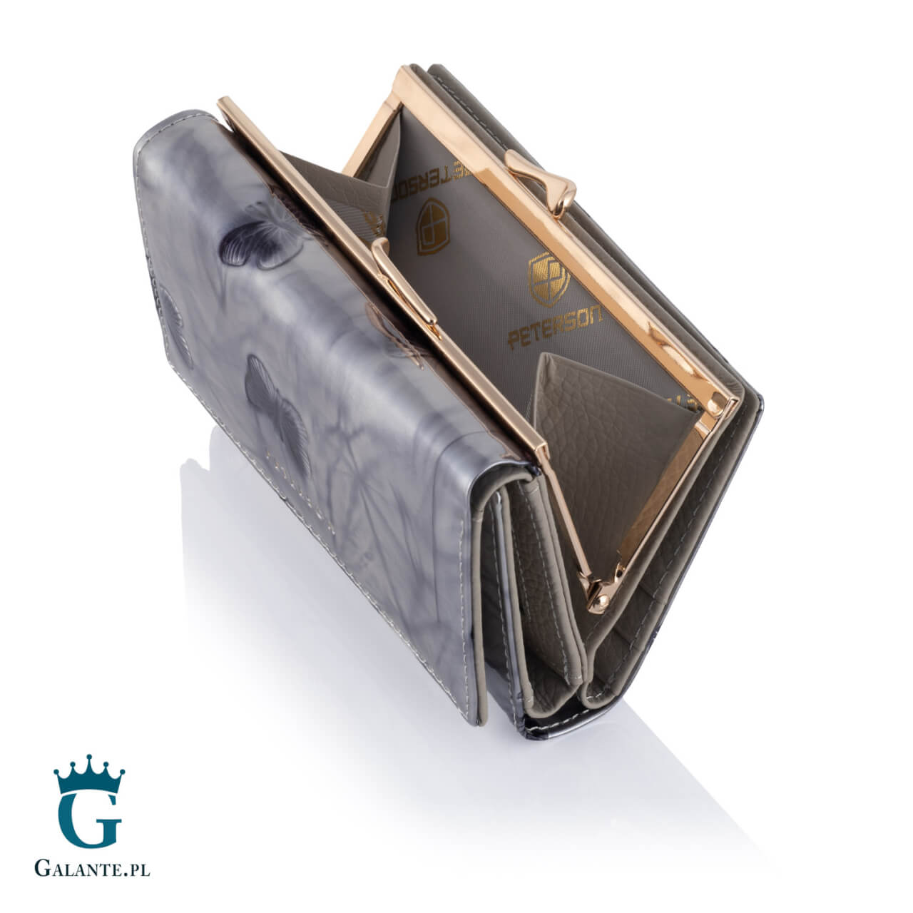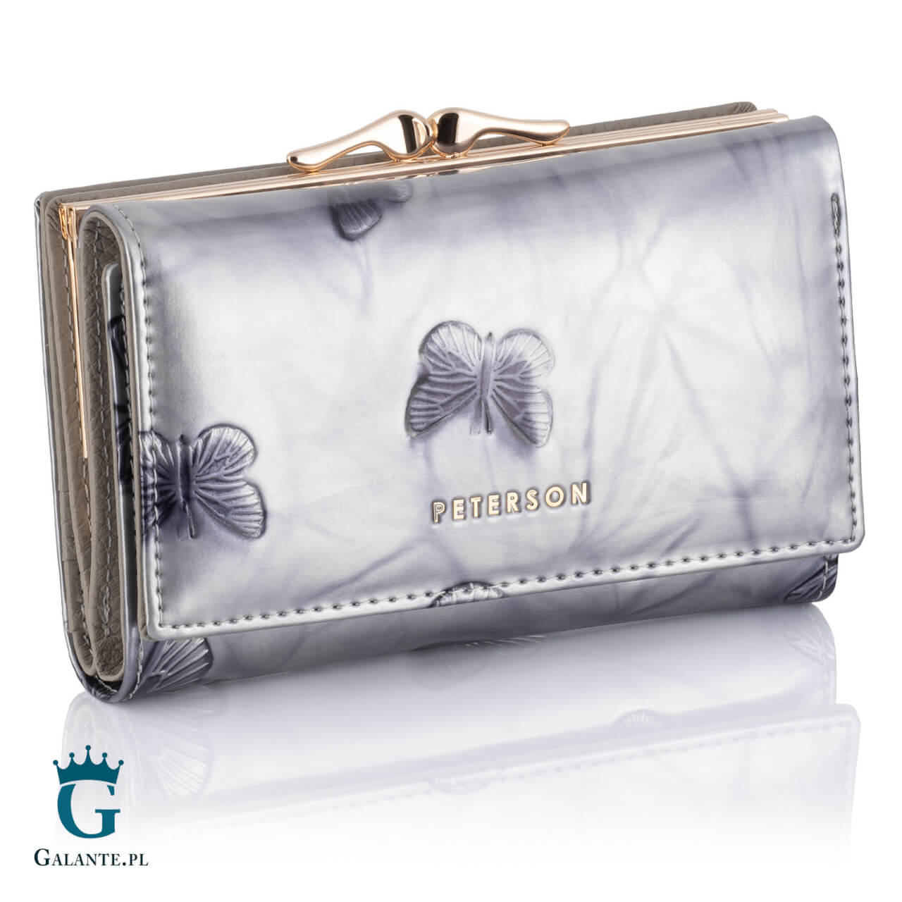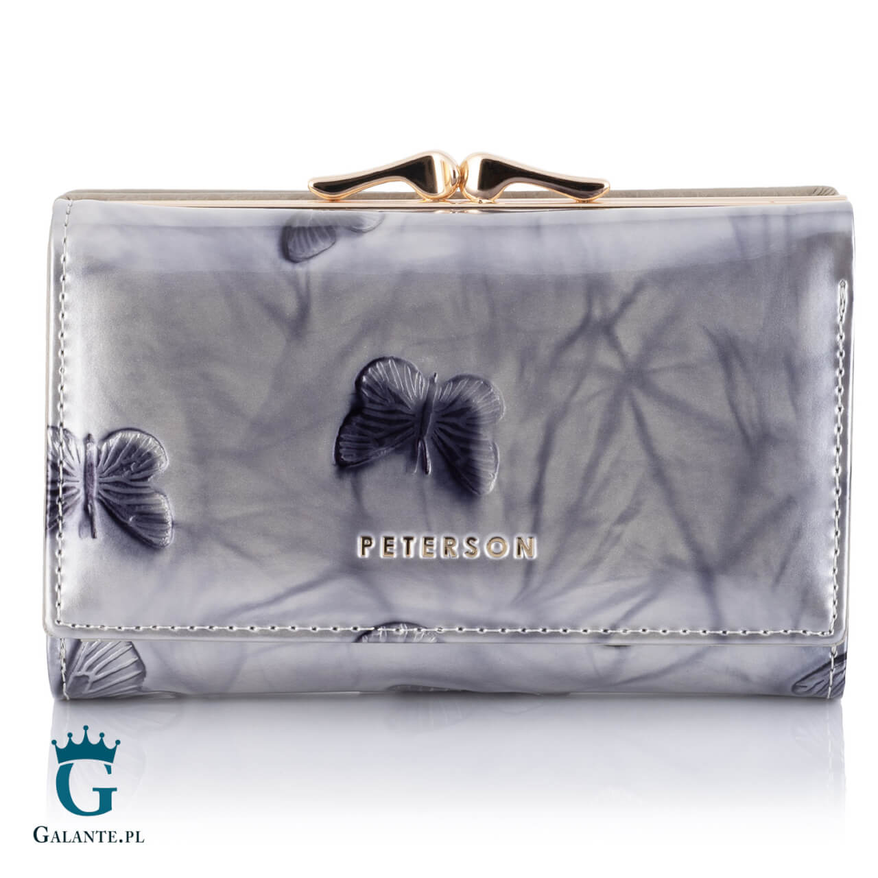 Zgrabny skórzany portfel damski Srebrne Motyle PETERSON
