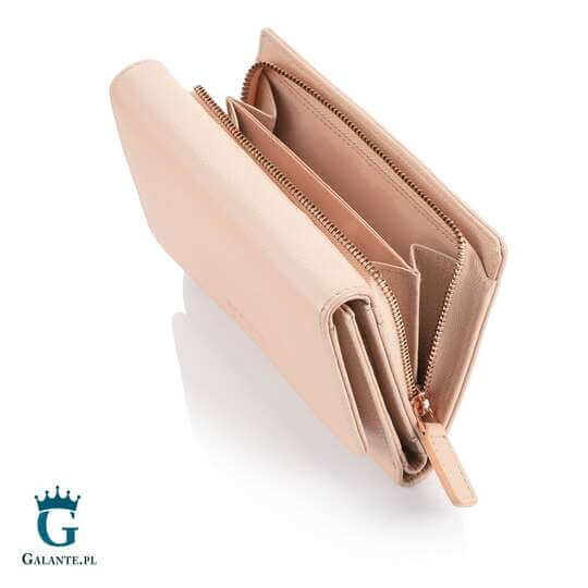 Okucia i zamki są dopasowane do koloru portfela.